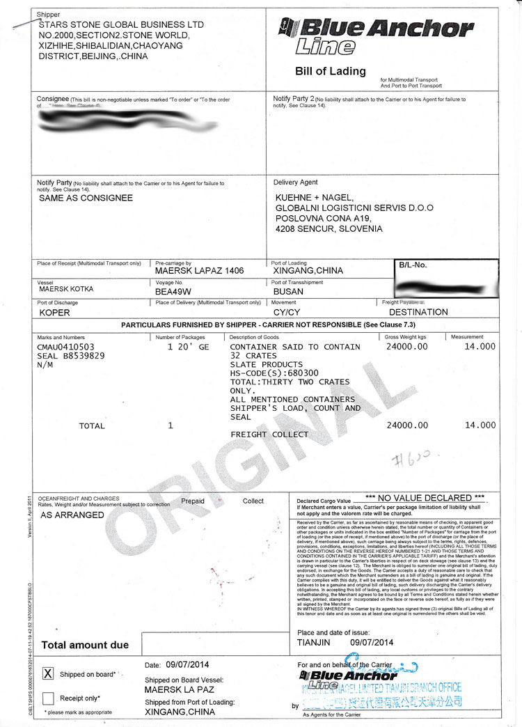 SHIPPING DATE : SEP 7, 2014